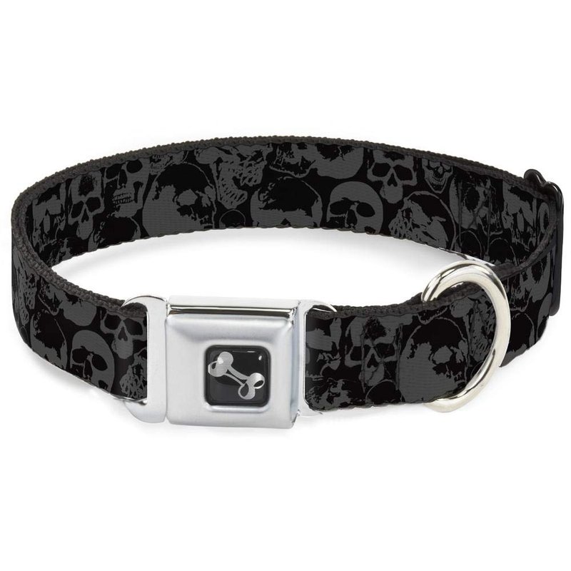 - Style: Buckle-Down Seatbelt Buckle Dog Collar - Skull Pile Black/Gray - 1" Wide - Fits 9-15" Neck - Small