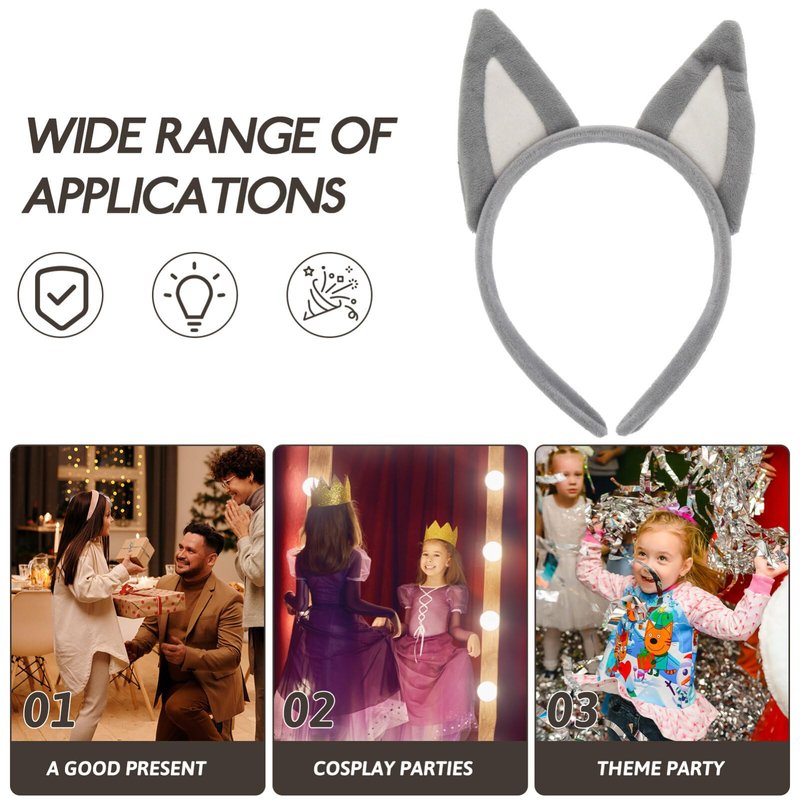Dog Ears Headband Halloween Animal Cosplay Costumes Dress-up Headpiece Wolf Headwear for Women Grey