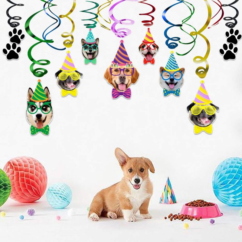 Dog Faces Birthday Swirl Hanging - Dog Birthday Theme Party Bunting Decoration Party Supplies 30Ct