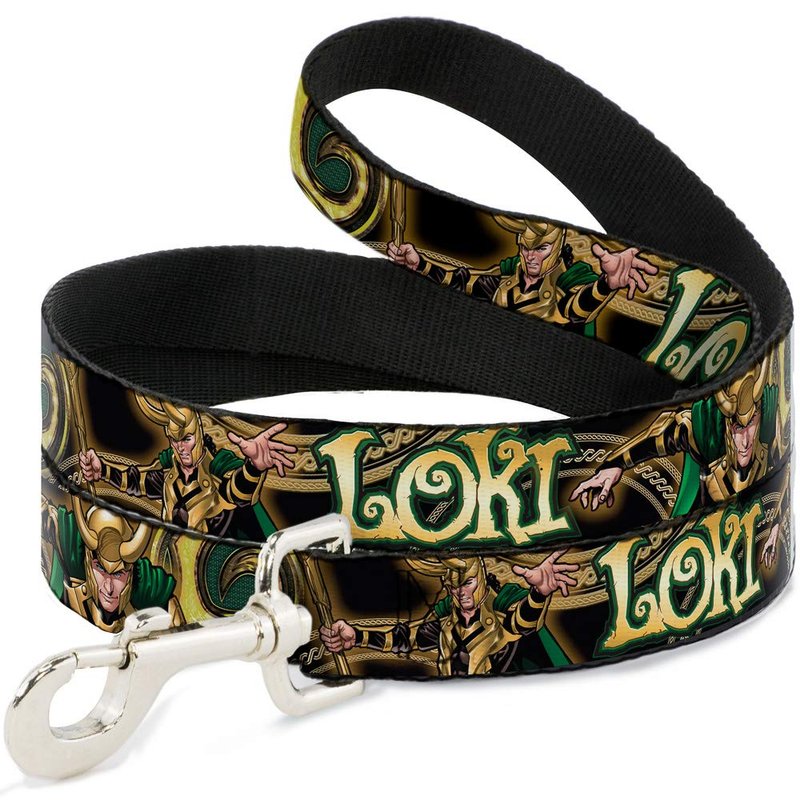 Dog Leash Loki Poses Black Gold Green 6 Feet Long 1.0 Inch Wide