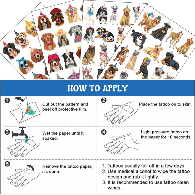 - SERVICE GUARANTEE: :If you have any questions about these dogs temporary tattoos, please feel free to contact us. We will reply within 24 hours.
