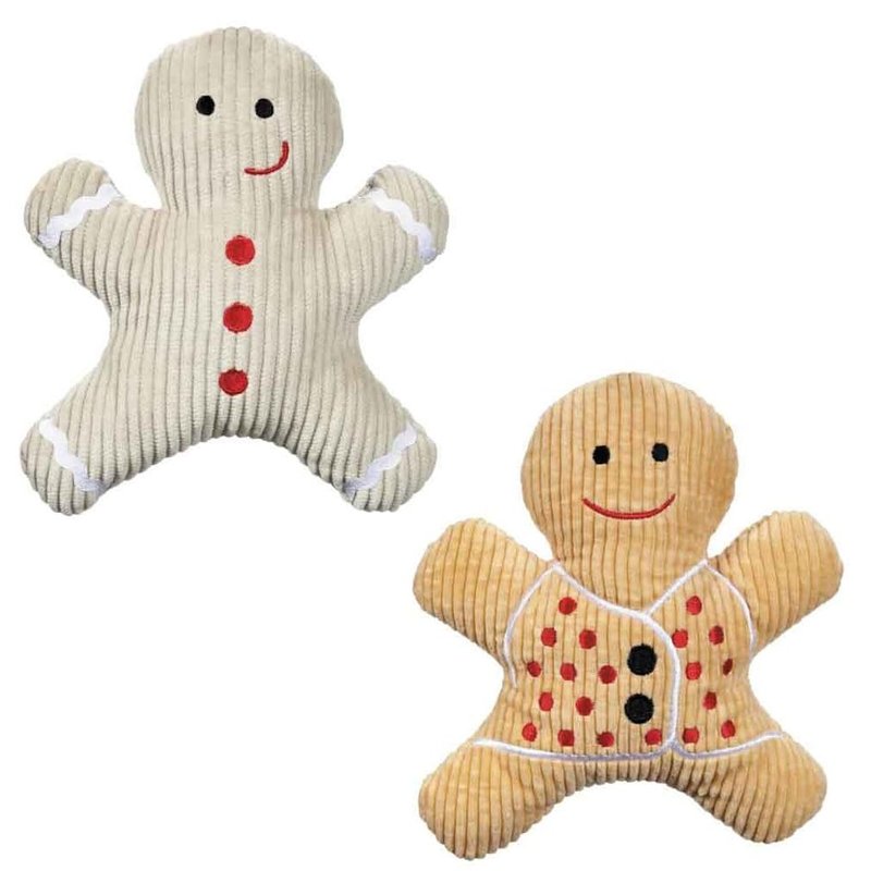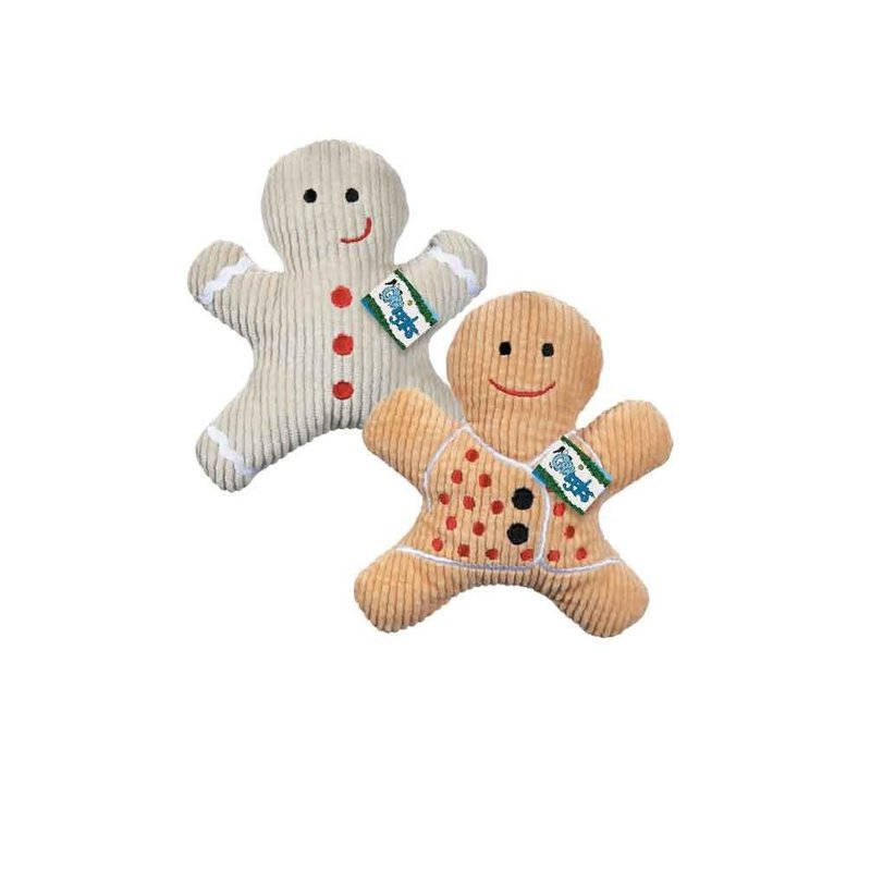 Our Scented Gingerbread Dog Toys Scented Gingerbread Men are spice-scented toys, with a delightful aroma that evokes holiday baking. These "cookies" are ideal holiday treats for good dogs! These sweet-looking Scented Gingerbread Men toys look like real sweets! These cute cookie replicas feature rick rack trim and embroidered faces and buttons. Colors available are almond and light brown Each 7" squeaker toy is made with corduroy fabric, for a different texture Materials: Corduroy, polyfill, squeaker Size: Each measures 7"