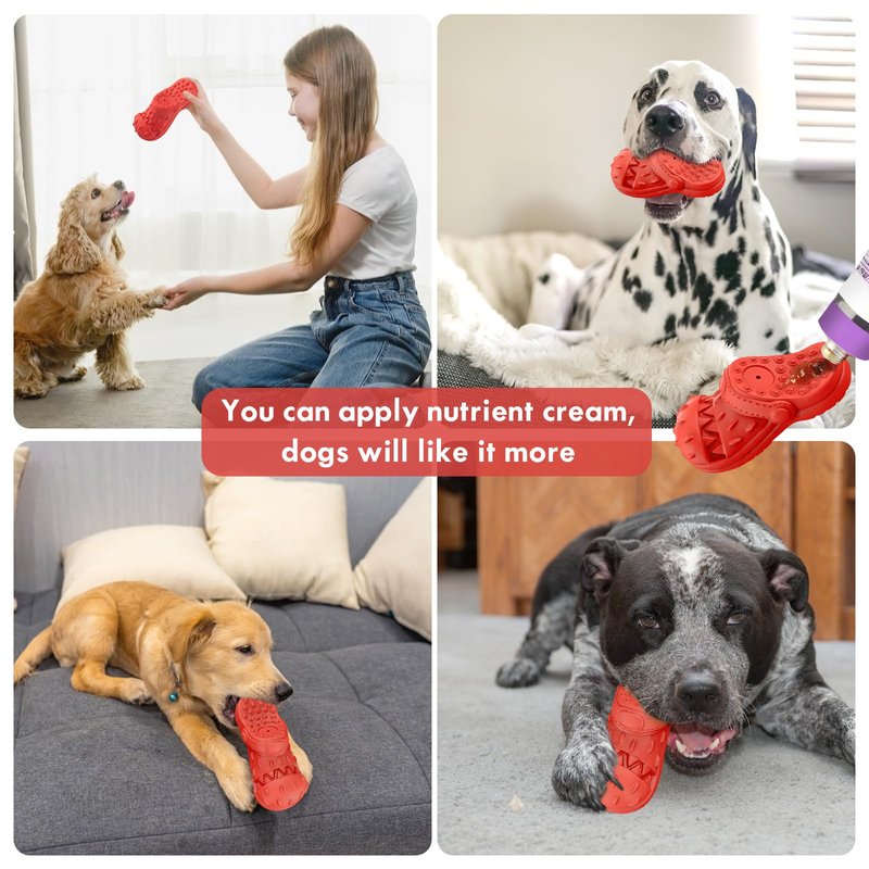 Dog Toy Treat Dispensing, Almost Indestructible Squeaky Chew Toys for Dogs, Natural Rubber Puzzle Toys, Tough Toy Treat Dispenser for All Type of Dogs, Innovative Shoe-Shaped Dog Toy (Red)