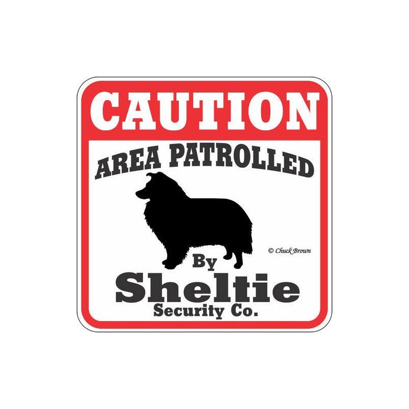 This "Caution Area Patrolled by " Sheltie sign is a great way to let everyone know you have a Sheltie patrolling your property. The Caution Area Patrolled signs are screen printed on UV protected Styrene with UV inks. These 11" x 11" signs are weather resistant and suitable for outdoors. Made in the USA. Making them the best Sheltie gift on the market.
