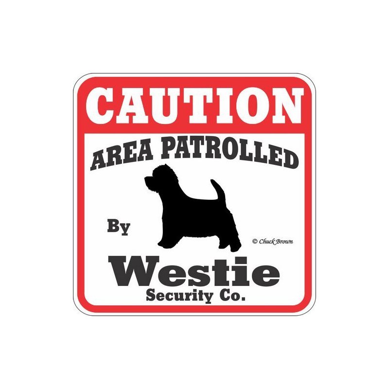 This "Caution Area Patrolled by " Westie sign is a great way to let everyone know you have a Westie patrolling your property. The Caution Area Patrolled signs are screen printed on UV protected Styrene with UV inks. These 11" x 11" signs are weather resistant and suitable for outdoors. Made in the USA. Making them the best Westie gift on the market.
