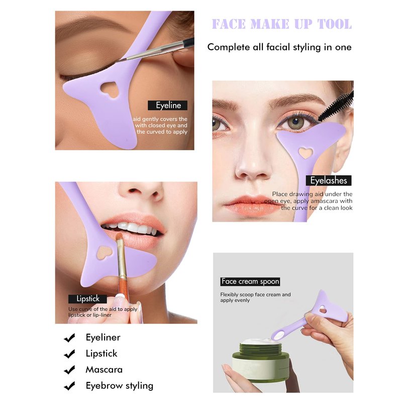 Our eyeliner tool help you get easy eye makeup; The multi-angle design can also be used as an eyelash drawing tool, eyeshadow tool, eyebrow pencil stencil, or even as a lip ruler, make your lipstick no longer overflow.