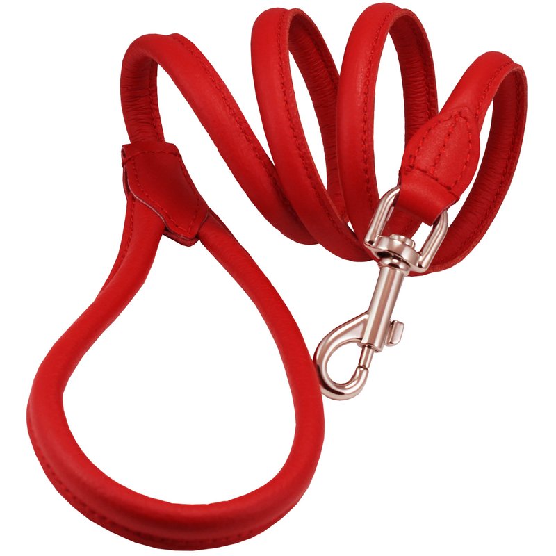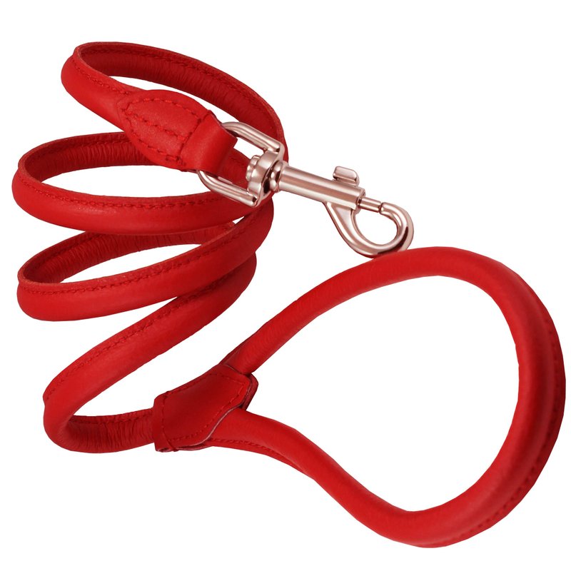 - 4-ft long leash made of soft, elegant, comfortable, and durable 100% genuine high quality rolled leather.