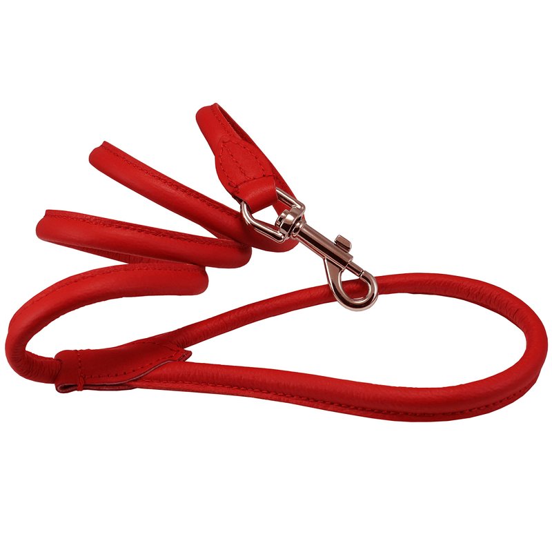 Dogs My Love 4ft Long Round Genuine Rolled Leather Dog Leash Red (Small: 3/8" (8mm))
