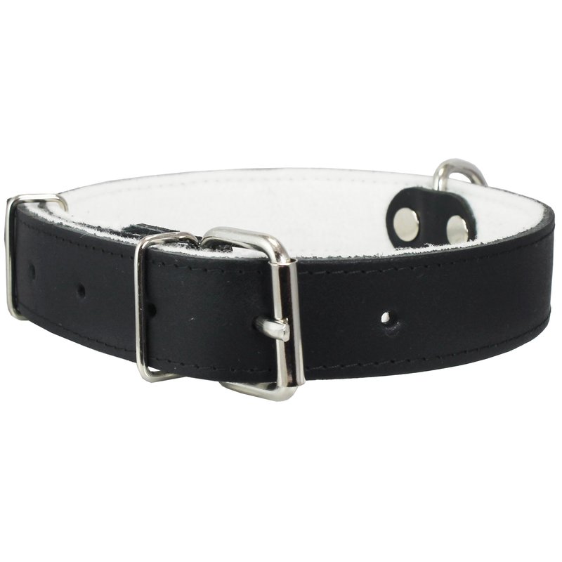 Dogs My Love Genuine Leather Felt Padded Dog Collar (18"-22.5" Neck; 1.25" Wide, Black)