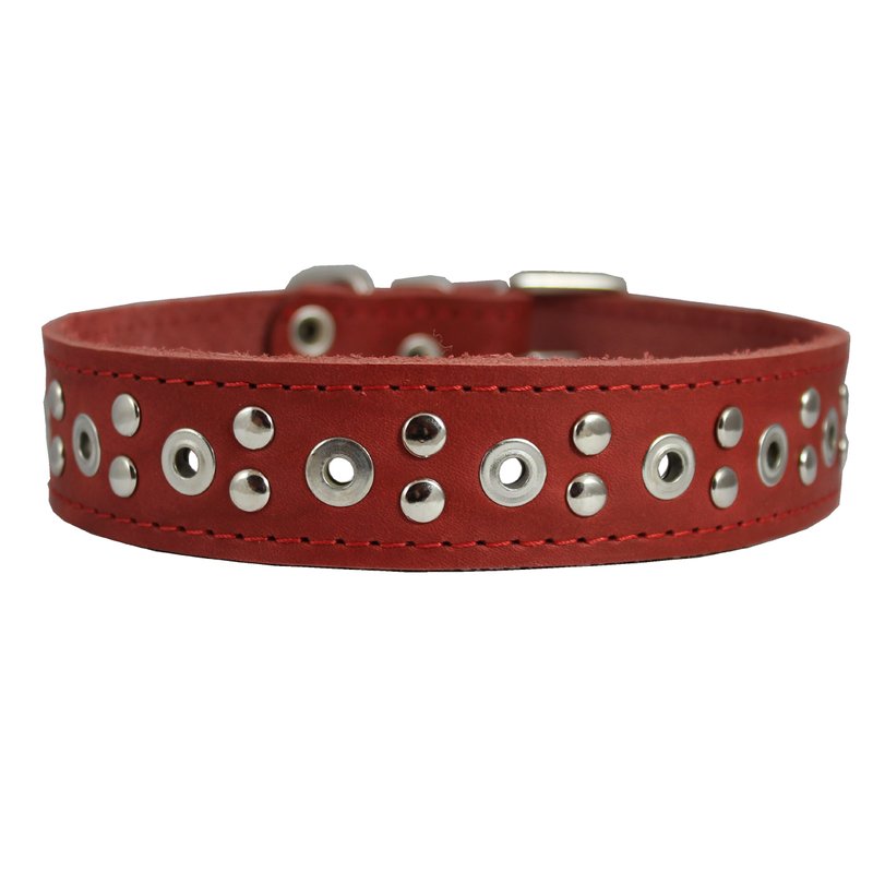 Dogs My Love Genuine Leather Studded Dog Collar 22"x1.4" Red Fits 14.5"-18" Neck