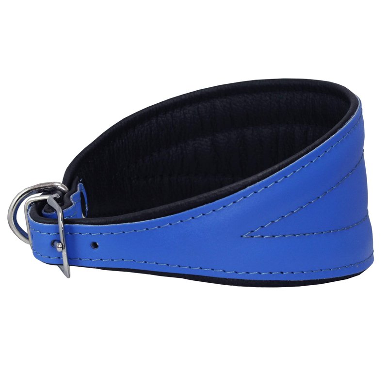 Dogs My Love Real Leather Extra Wide Padded Tapered Dog Collar (16.25"-18.75" Neck; 3" Wide, Blue)
