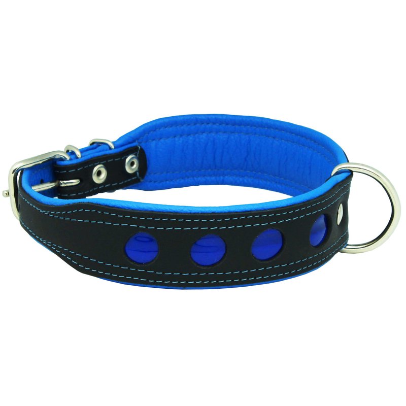 Dogs My Love Real Leather Soft Leather Padded Dog Collar Reflective (15"-17" Neck; 1.75" Wide, Black/Blue)