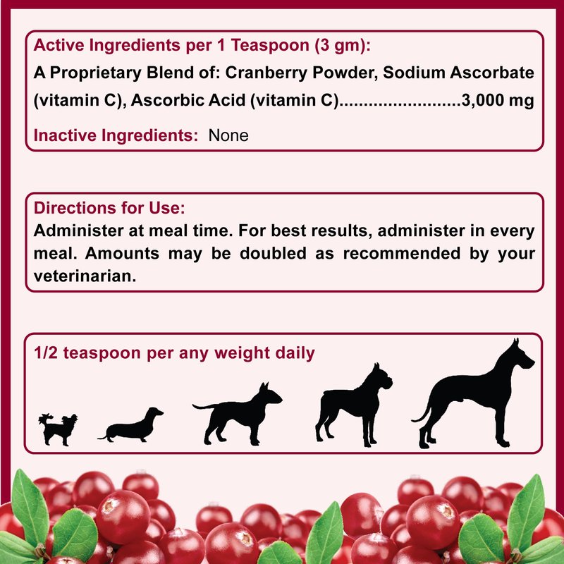 Dogzymes Cran Tri C Cranberry Urinary Tract Support, Vitamin C Blend, 1418mg per Teaspoon (2 Pound)