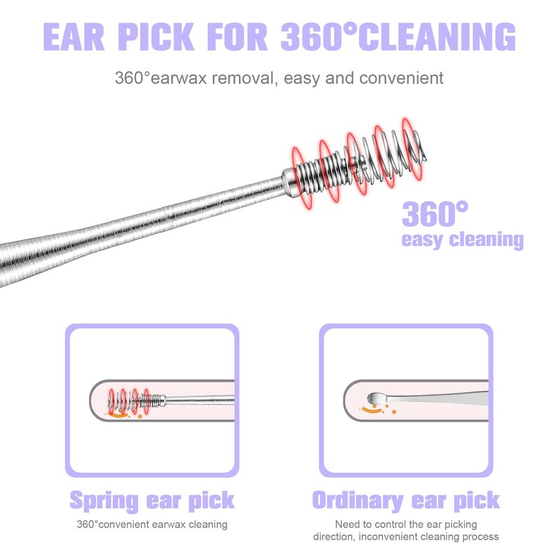 - 【360 degree rotation】: 360 degree all-round cleaning of the ear canal. Removes residual earwax stuck to the walls of the ear canal. Rotate the ears to scrape the dirt layer by layer.