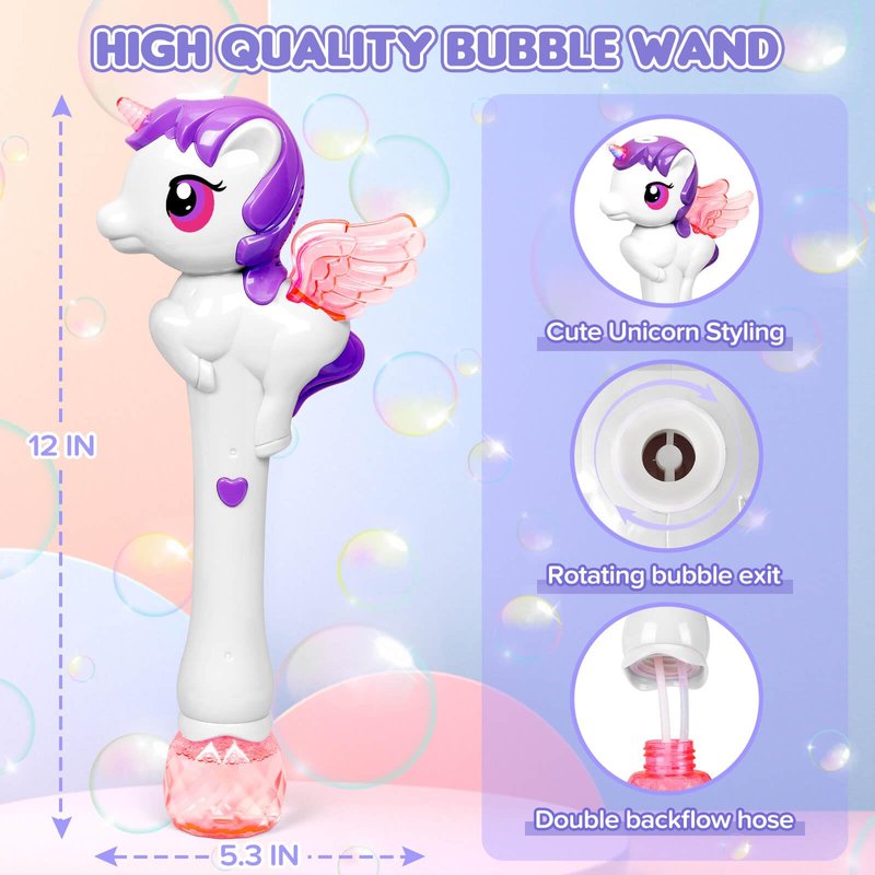 - Bubble Wonderland: Press play & watch your child be enveloped in a dreamy bubble world. The Unicorn Bubble Wand delivers endless fun, creating a delightful atmosphere for hours of play