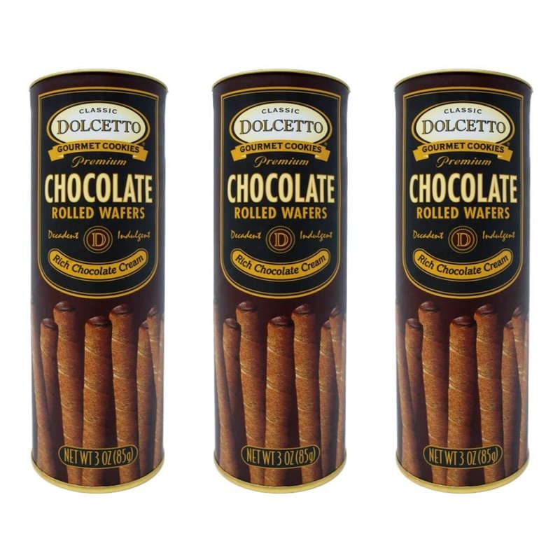 Dolcetto Premium Cream Filled Rolled Wafers Gourmet Chocolate Cookies - Pack of 3 (3 Ounces)