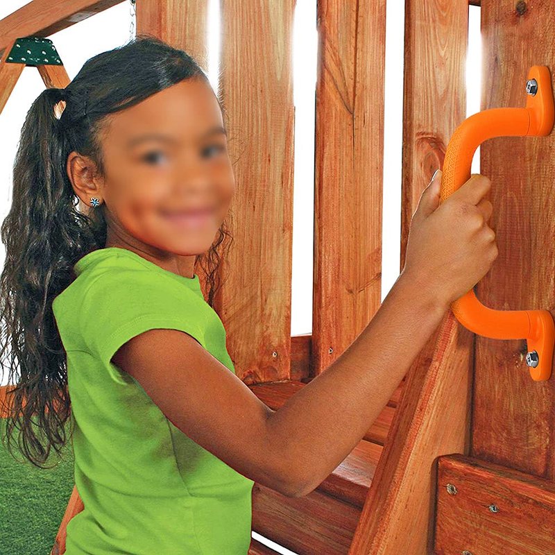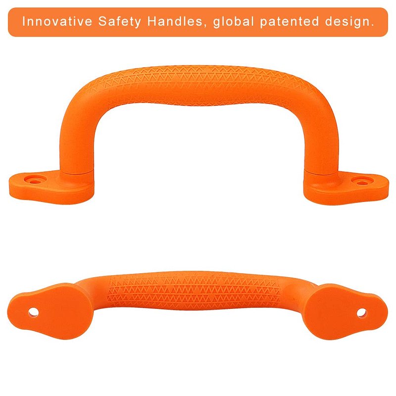 - 【Patented Innovative Finger Indentations Design】Perfect for adding concave triangle pattern to make the handle more beautiful, comfortable and strong handles with finger indentations Anti-skid design can be secure grip for small hands, can be mounted at ladder, rock wall and lookout mountain access points, safety Handles provide youngsters with a helping hand when climbing up to a play deck.