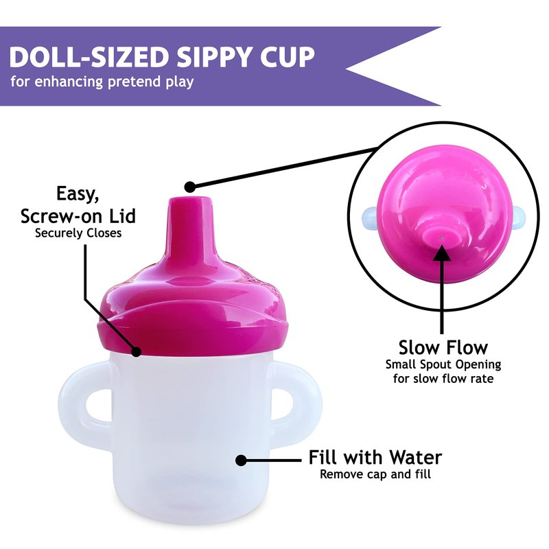 - ENHANCE PLATYTIME WITH BABY DOLL ACCESSORIES: Our small, doll-sized sippy cups are the perfect alternative to standard baby doll bottles and keep little ones engaged with imaginative play.