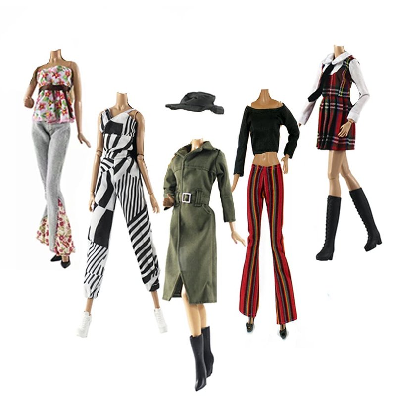 Doll Clothes, 5 Outfits Autumn Dresses Windbreaker Hat for 11.5 Inch Dolls Accessories Random Style