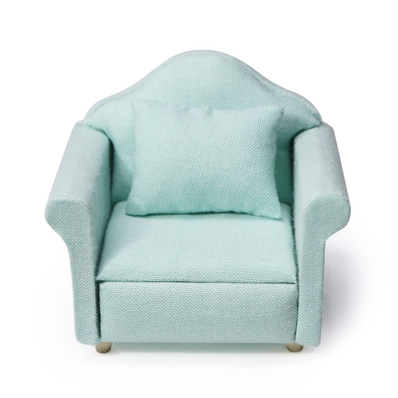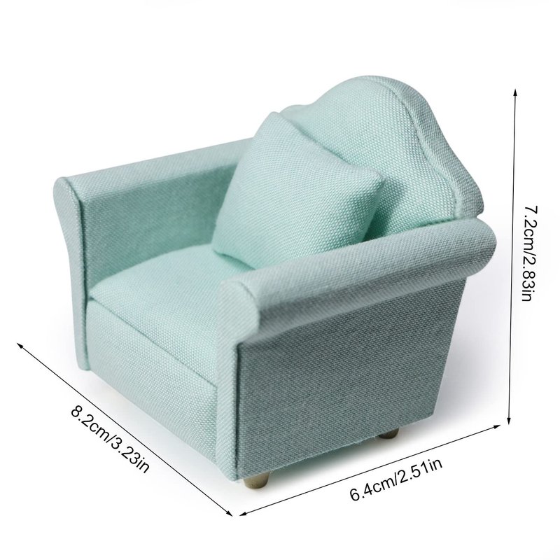 Dollhouse Couch Miniature Furniture Sofa with Pillows for Living Room Desktop Decoration Fabric Sofa Mini Home Scene Accessories Ornament (Single Sofa, Green)