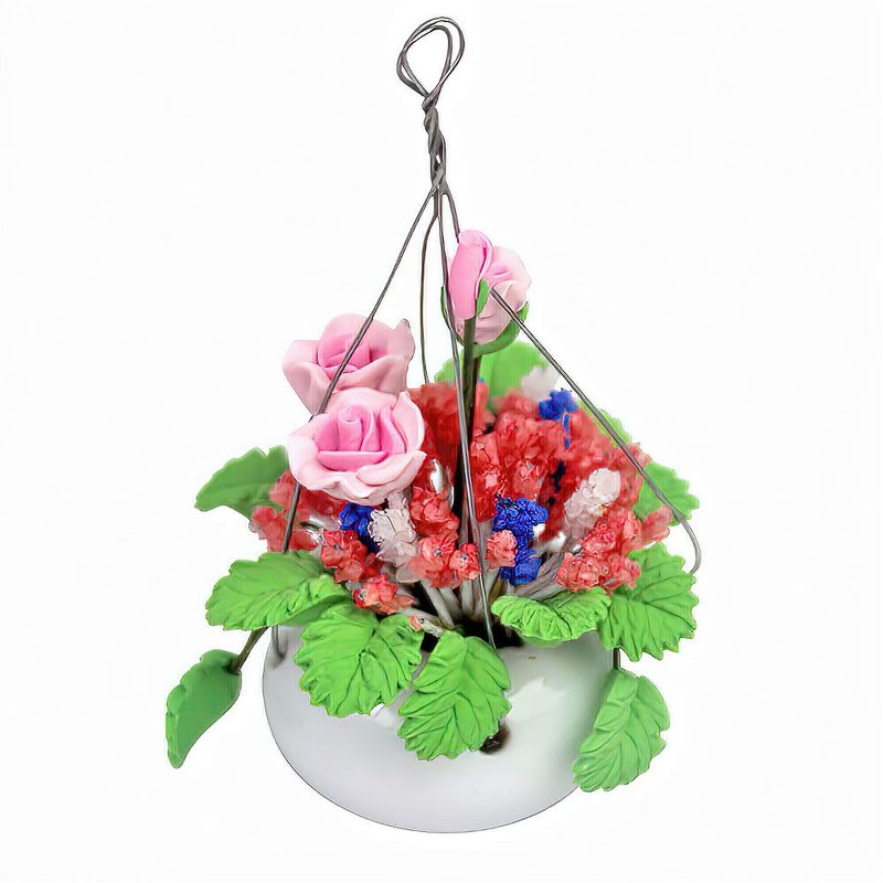 Dollhouse Decoration Plant Pots Miniature Green Potted Miniature Bonsai Model Dollhouse Accessories Decor,1 12 Scale Doll House Miniature Plant Model (1 Hanging Pot Rose)