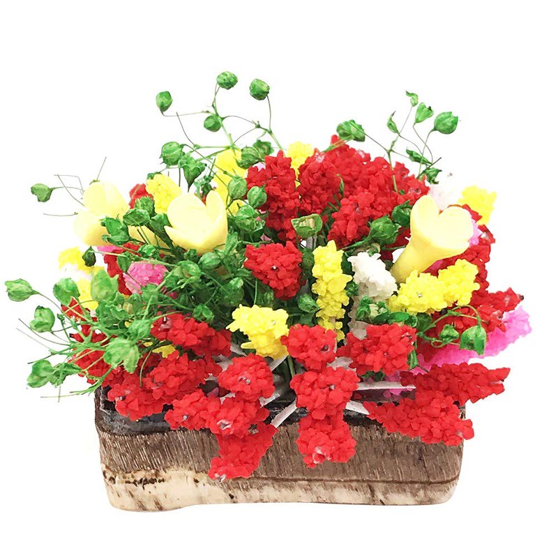 Dollhouse Decoration Plant Pots Miniature Green Potted Miniature Bonsai Model Dollhouse Accessories Decor,1 12 Scale Doll House Miniature Plant Model (Flowers in The Bed)