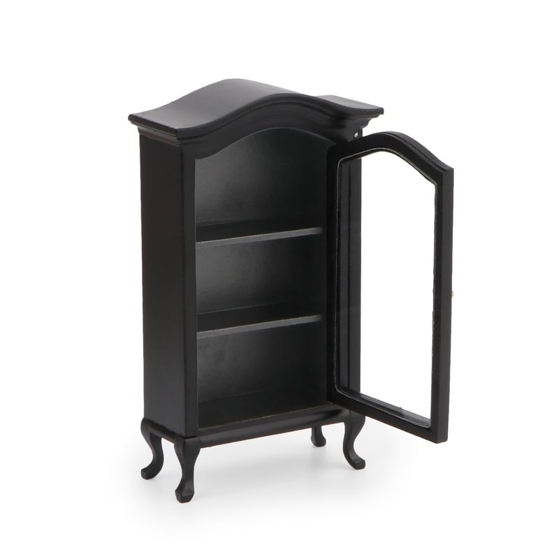 Dollhouse Furniture Display Shelf 1:12 Scale Miniature Bookshelf Cabinet Decoration Classic Wooden Mini Storage for Mini Artificial House Accessories (Black)