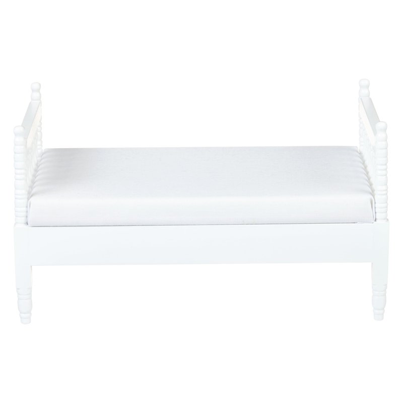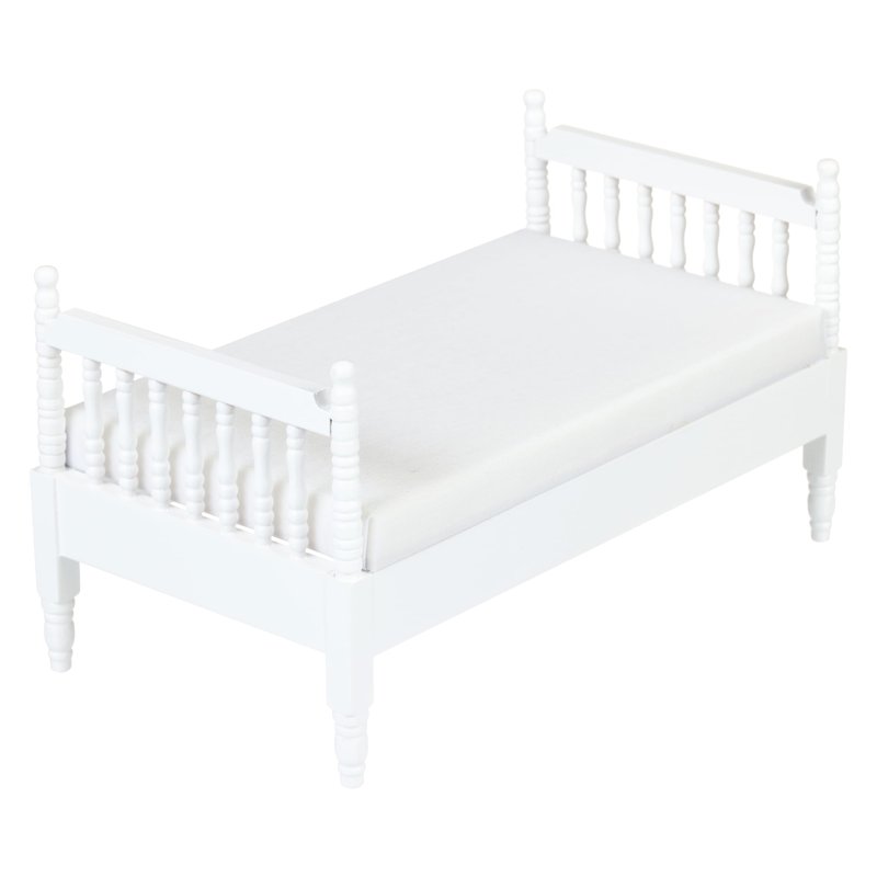 - Carved Details: This small modern doll house bed features a headboard and footboard with carved details to make sure they don’t just look good but more realistic as well. The bed frame is white color.