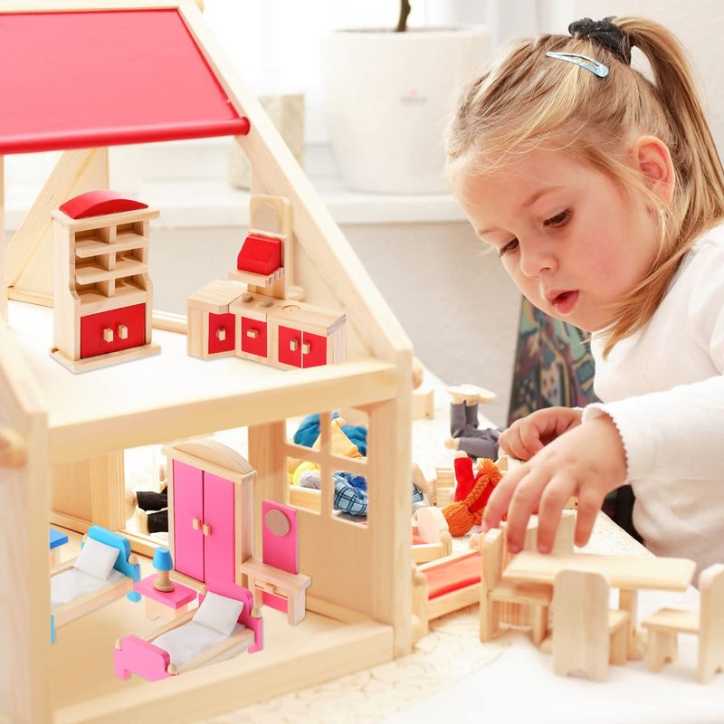 - Family interaction: the drawers, closet doors and cabinets can be opened, which are both cute and authentic, allowing children to experience realistic home design; This set of doll house furniture also has the purpose of creative games, furnishings, making up stories and interacting with dolls, you can easily establish family interaction with your child through the classic wooden dollhouse scenes in a fun way