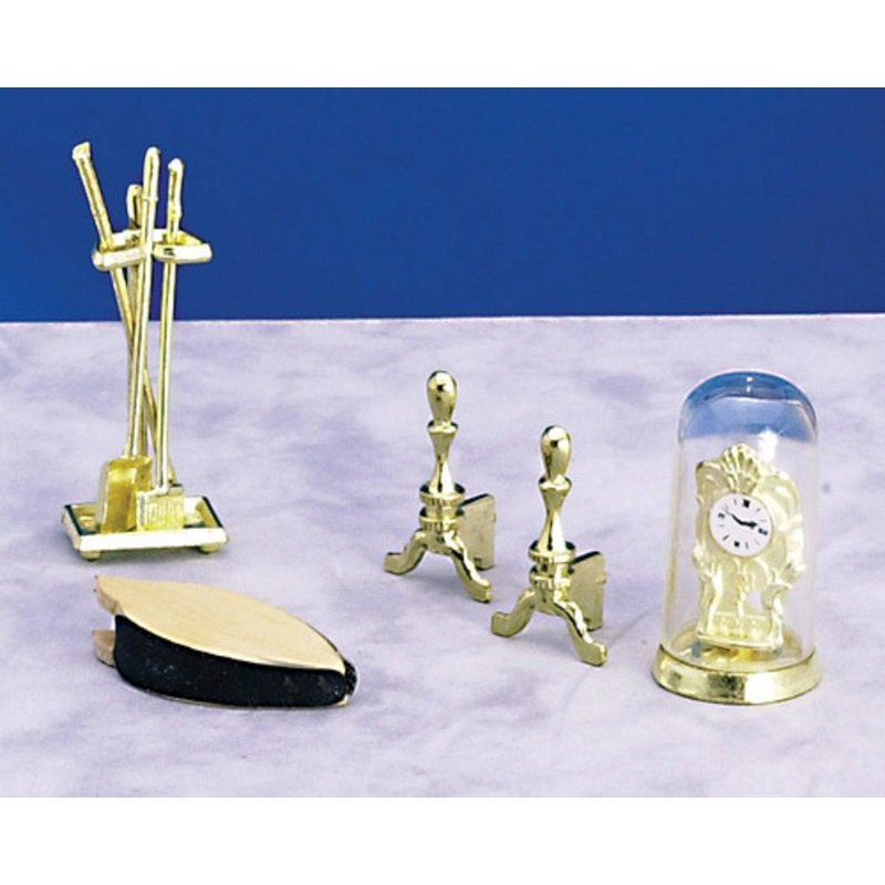 Dollhouse Miniature 1:12 Scale Fireplace Accessories with Clock, 8 pc