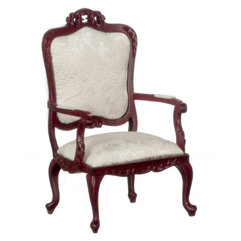 Dollhouse Miniature Fancy Victorian Mahogany White Arm Chair Living Room Furniture 1:12