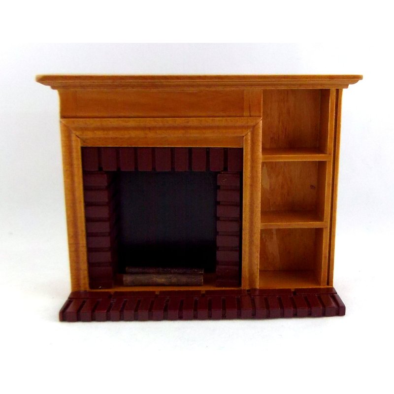 Dollhouse Miniature Furniture Walnut Red Brick Fireplace with Shelves