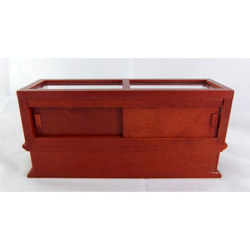 Store Display Case in Walnut by Town Square Miniatures. Designed for the 1:12 scale miniature setting. Wade of wood and glass. Measures 3 inches tall x 6 7/16 inches wide x 2 inches deep.
