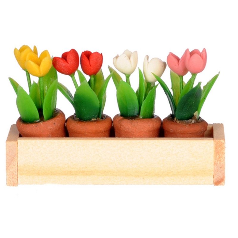 Dollhouse Miniature Window Box w/Flower Pots by International Miniatures
