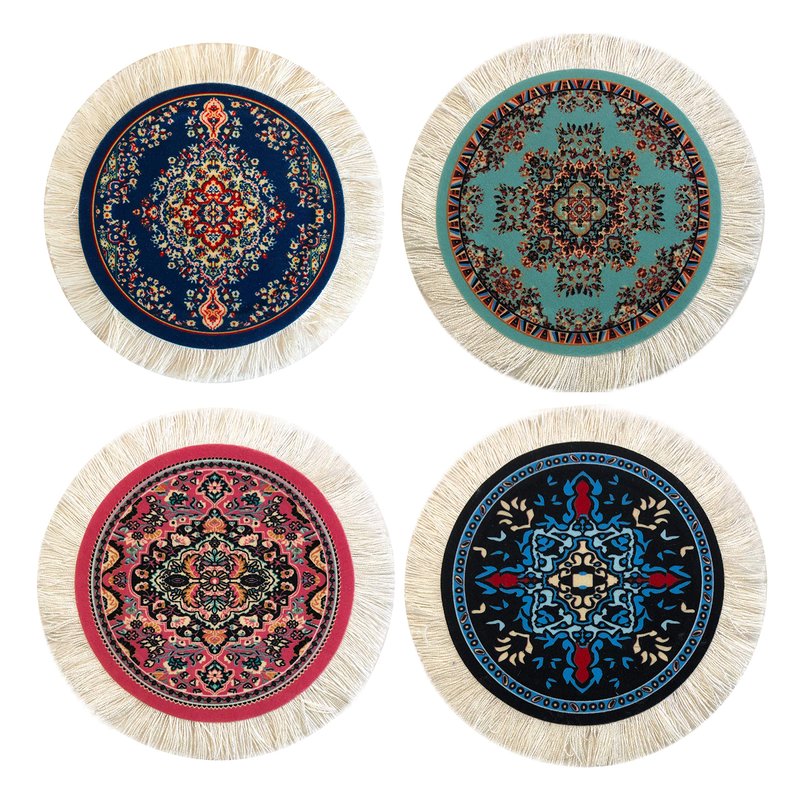 - Set of 4 (four) round miniature dolls house carpets – Package includes all pictured rugs