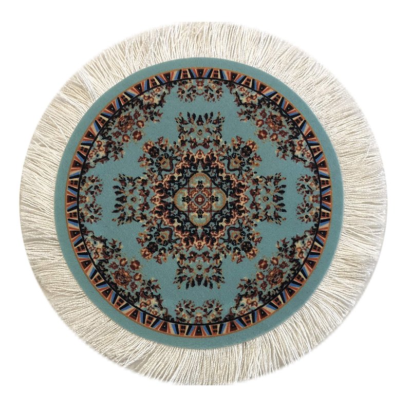 Oriental rugs have been famous for centuries. Now you have the opportunity to add miniature versions of these beautiful designs to your dollhouse. You will receive the four (4) rugs that are pictured. Product Details - Top of each rug has a soft, velvety feel with a unique and authentic Oriental rug design - White fringes long the edge - Bright colors that do not fade - Carpet is washable - Detailed design of authentic Oriental Rugs - Size including fringes: 5" diameter