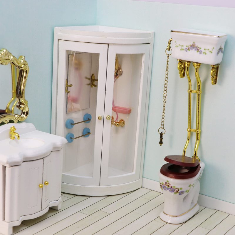 PACKAGE INCLUDING: 1* Bathroom miniature doll house birch shower room