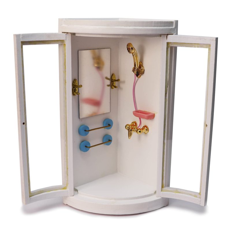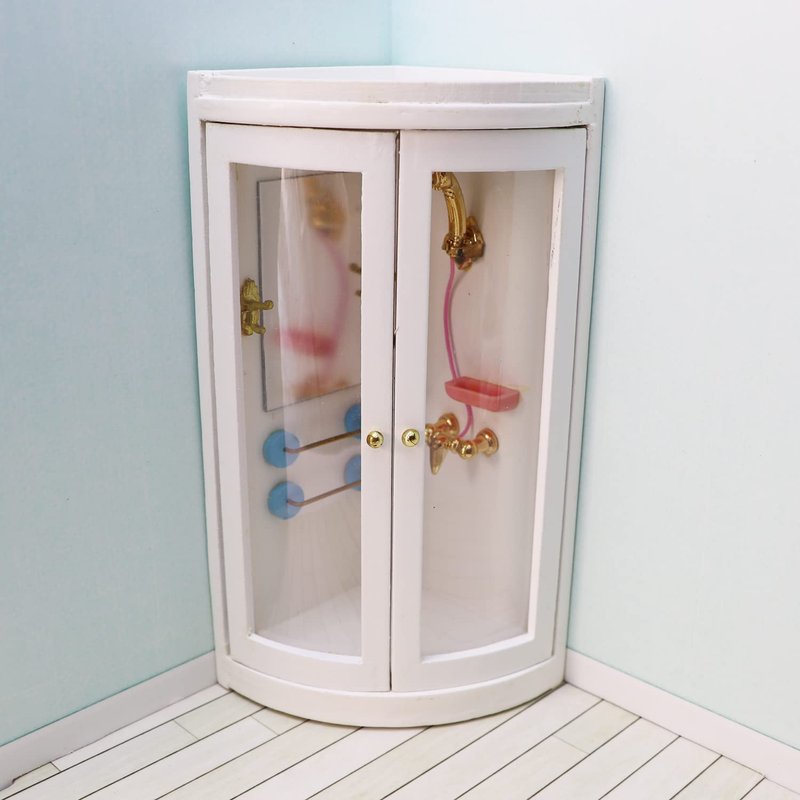 - VIVID DESIGN-A quarter cylinder shower room double opening door with colorful tiny accessories fits your doll house perfectly.