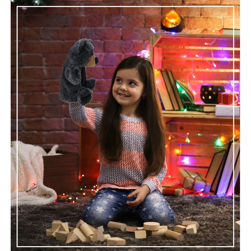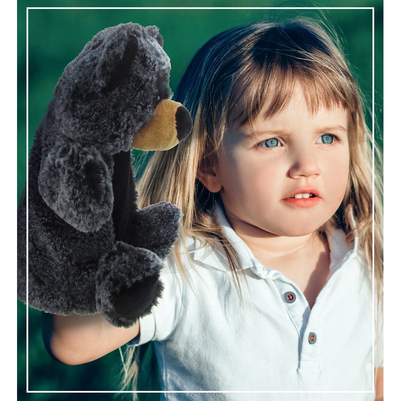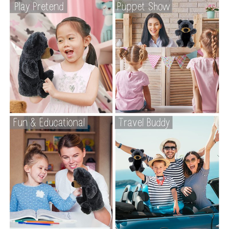 - IDEAL USE FOR THE BLACK BEAR HAND PUPPETS - Hand puppet doll of adorable black bear figure for entertaining & learning activities through a puppet show. Perform a fun animal show for your little kids at home. Communicating with kids using a puppet in a funny voice will help kids remember their lessons delivered in a memorable way. Serves as an educational toy puppet for family bonding while putting on a show that can be played indoors & outdoors.