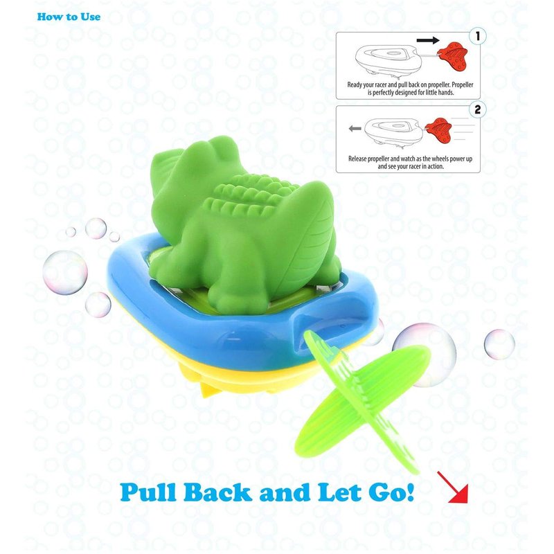- 3 STIMULATING PLAYABLE MODES: Make bathtub time a splash with the Dollibu Alligator Bath Buddy Boat Racer. Simply pull the propeller string to wind up wheels, set it down, and watch it speed on land or water. Race against friends in the pool and the living room floor. Need a pit-stop? Let kids imagine the tub as the ocean, take the Alligator off its boat, and enjoy finger puppet play! Boat racers are fast water toys that will keep kids busy for hours while providing more than one way to play.