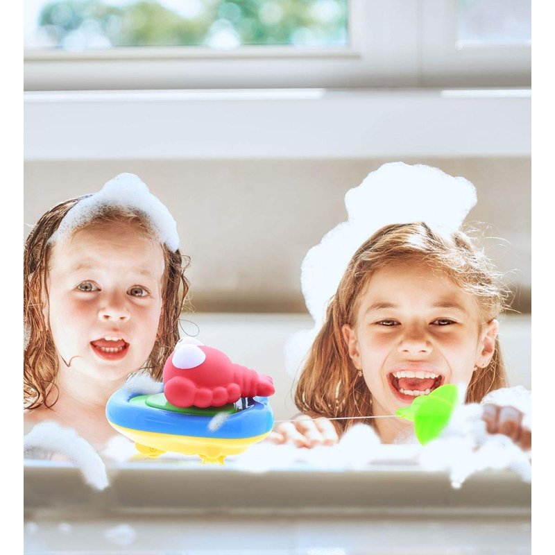 Dollibu Boat Racer Buddy, Fun Educational Bath Toy Finger Puppet Pull and Go Water Racing Sea Life Pal for Shower Pool Bathtub Swim Hard Surface - Baby Toddler and Boy - 6 Inch - 3 in 1 Game – Lobster
