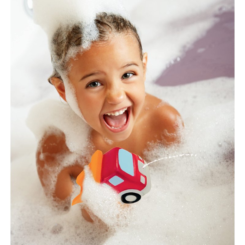 - INCLUDED WITH THE PURCHASE OF BATH SQUIRTER TOY - Includes 1 Dump Truck Bath Buddy Squirter Toy for kids, colored in orange & red. The bath toy features smooth, soft, & rounded edges to ensure the safety of children while enjoying water games. Designed with soft rubber wheels & dump body. The squirter toy truck shoots out water from a tiny hole when squeezed. Baby float squirter toy measures around 3 inches, perfect fit for babies' little hands.