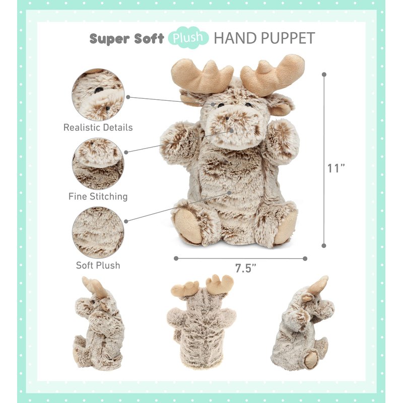 - IDEAL USE FOR THE MOOSE HAND PUPPETS - Hand puppet doll of an adorable moose figure for entertaining & learning activities through a puppet show. Perform a fun animal show for your little kids at home. Communicating with children using a puppet in a funny voice will help kids remember their lessons delivered in a memorable way. Serves as an educational toy puppet for family bonding while putting on a show that can be played indoors & outdoors.