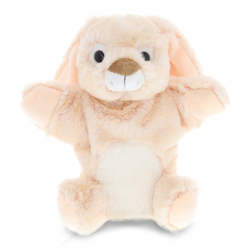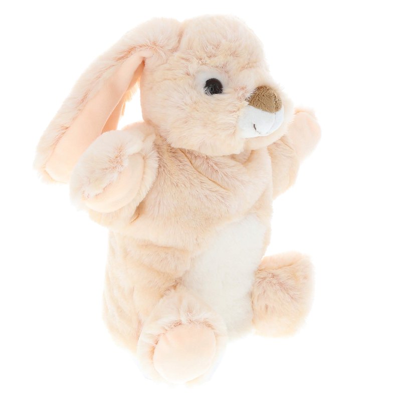 - INCLUDED WITH THE PURCHASE OF PLUSH PUPPET TOY -Includes 1 DolliBu Rabbit Plush Hand Puppet. Smiling fluffy baby rabbit plush has cute features like black button eyes, short muzzle & brown nose. The rabbit's head & hands are movable & can be controlled using the pinky & thumb fingers. Soft beige-colored plush fabric & fine stitching allows the performer to move its fingers freely & comfortably. The hand puppet animal measures 9"Lx6"Wx4"H.
