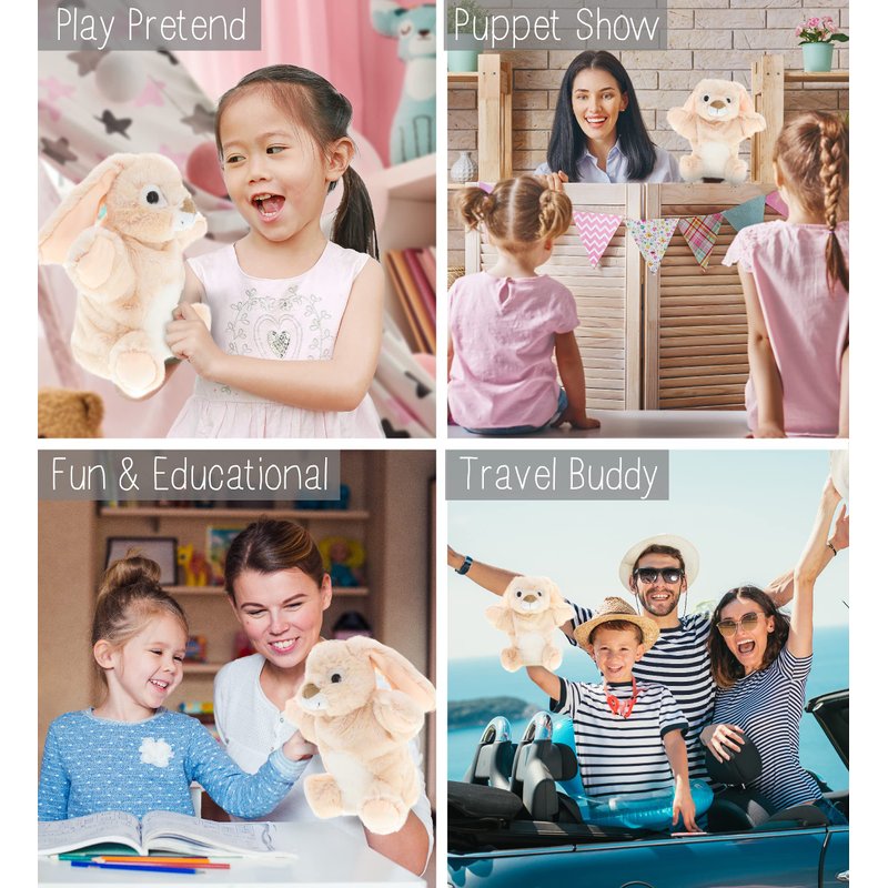 - IDEAL USE FOR THE RABBIT HAND PUPPETS - Hand puppet doll of an adorable rabbit figure for entertaining & learning activities through a puppet show. Perform a fun animal show for your little kids at home. Communicating with children using a puppet in a funny voice will help kids remember their lessons delivered in a memorable way. Serves as an educational toy puppet for family bonding while putting on a show that can be played indoors & outdoors.
