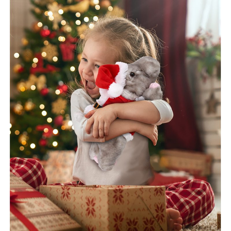 Send warmest thoughts to loved ones with a sentimental large stuffed animal hippo this holiday season. Giving hippopotamus for Christmas gifts with a classic red Santa Claus outfit is a cute way to share the joy of the holidays. Make occasions memorable by surprising him or her with large stuffed animals like this big hippo stuffed animal that can be displayed under the Christmas tree or in addition to your stuffed Christmas animals outdoor decor. The stuffed Christmas hippopotamus plush is designed with realistic details and grey plush, making it a sweet holiday plush hippo gifts for women or men or for all your loved ones. Let your wife, husband, children, friends, and significant other know that you wish them well by giving them a Santa Claus Hippo Stuffed Toy. Stuffed hippo plush comes customized with a Santa Claus red outfit. You can personalize it with the name of your loved one, which we'll imprint on the item. You also have the option to add some or all of the cool add-ons to make it special: 1) Red, Pink, or Blue Gift Bag; 2) Gold Hearts, Red Hearts or Gold Stars Tissue Paper; 3) Greeting Card: Merry Christmas, Get Well, Happy Birthday, I Love You. The hippopotamus for Christmas stuffed animal is made from premium-quality polyester stuffed with soft fillings. Covered with soft grey fluffy plush. A snuggly and cozy plush hippo stuffed animal crafted with durable materials, designed to deliver a Happy Holidays message to loved ones in an adorable way. Maintain the grey toy hippopotamus clean by surface washing with cold soapy water and letting it dry. Includes 1 DolliBu Plush Hippopotamus Stuffed Animal. This hippo cuddle stuffed animal comes with a removable classic red and white Santa Claus hat and coat outfit, making it the perfect hippo lover gifts for your loved ones this holiday season. A fluffy stuffed animal plush hippo toy to give to your loved ones who love hippo toys. It measures 11.5Lx5.75Wx4.5H inches.