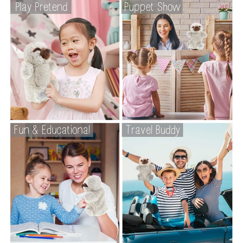 - IDEAL USE FOR THE SLOTH HAND PUPPETS - Hand puppet doll of an adorable Sloth figure for entertaining & learning activities through a puppet show. Perform a fun animal show for your little kids at home. Communicating with children using a puppet in a funny voice will help kids remember their lessons delivered in a memorable way. Serves as an educational toy puppet for family bonding while putting on a show that can be played indoors & outdoors.