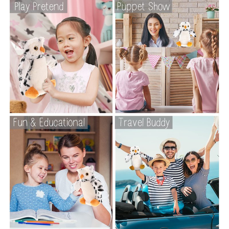 - IDEAL USE FOR THE WHITE OWL HAND PUPPETS - Hand puppet doll of adorable white owl figure for entertaining & learning activities through a puppet show. Perform a fun animal show for your little kids at home. Communicating with kids using a puppet in a funny voice will help kids remember their lessons delivered in a memorable way. Serves as an educational toy puppet for family bonding while putting on a show that can be played indoors & outdoors.