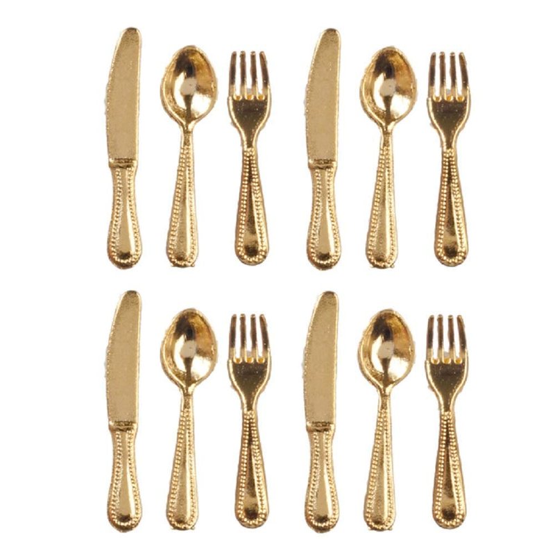 Dolls House Miniature Tableware Gold Cutlery Set 332