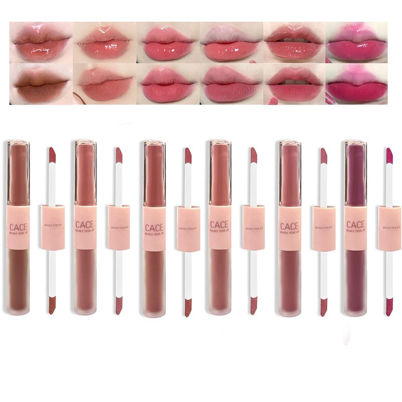 Domality 6 Colors 2 in 1 Double-end Lip Gloss Set, 6pcs Matte Velvet & Mirror Finish Liquid Lipstick, Long Lasting Waterproof Glossy Lip Glaze, Plumping Hydrating Fuller Lip Makeup Kit